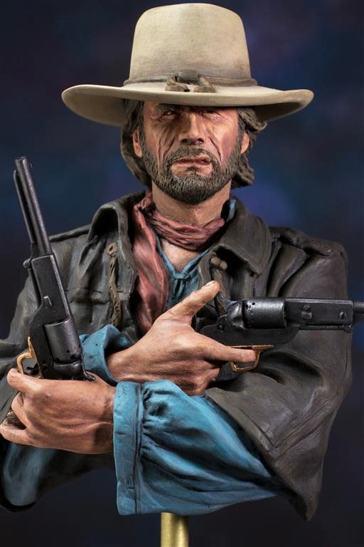 Well, here is the finished bust of Josey Wales.... A lot of work, even harder to photograph with the hat....
